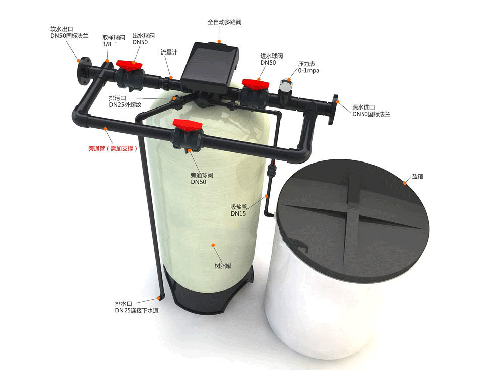 全自動(dòng)控制閥+玻璃鋼樹脂罐+交換樹脂+PE鹽桶