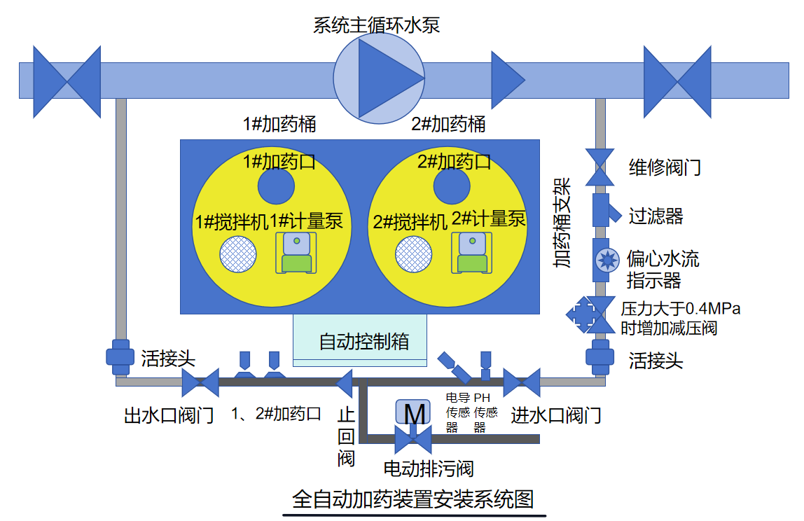 全自動藥劑添加,保證各種藥劑精確、及時、穩(wěn)定、可靠的投加及控制多種配置可供選擇,針對不同的水處理用戶全種精確監(jiān)控系統(tǒng)水質(zhì),全自動控制排污通過獨特的預(yù)設(shè)程式,控制加藥量,既保證加藥效果,又最大限度節(jié)省藥劑用量完備的自動保護措施,保證系統(tǒng)穩(wěn)定、安全運行.