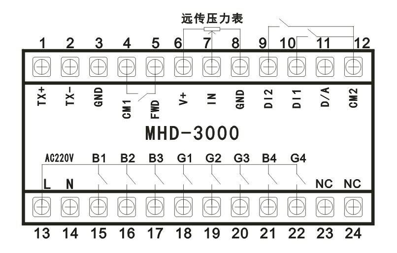 MHD-3000型控制器接線端子說明: